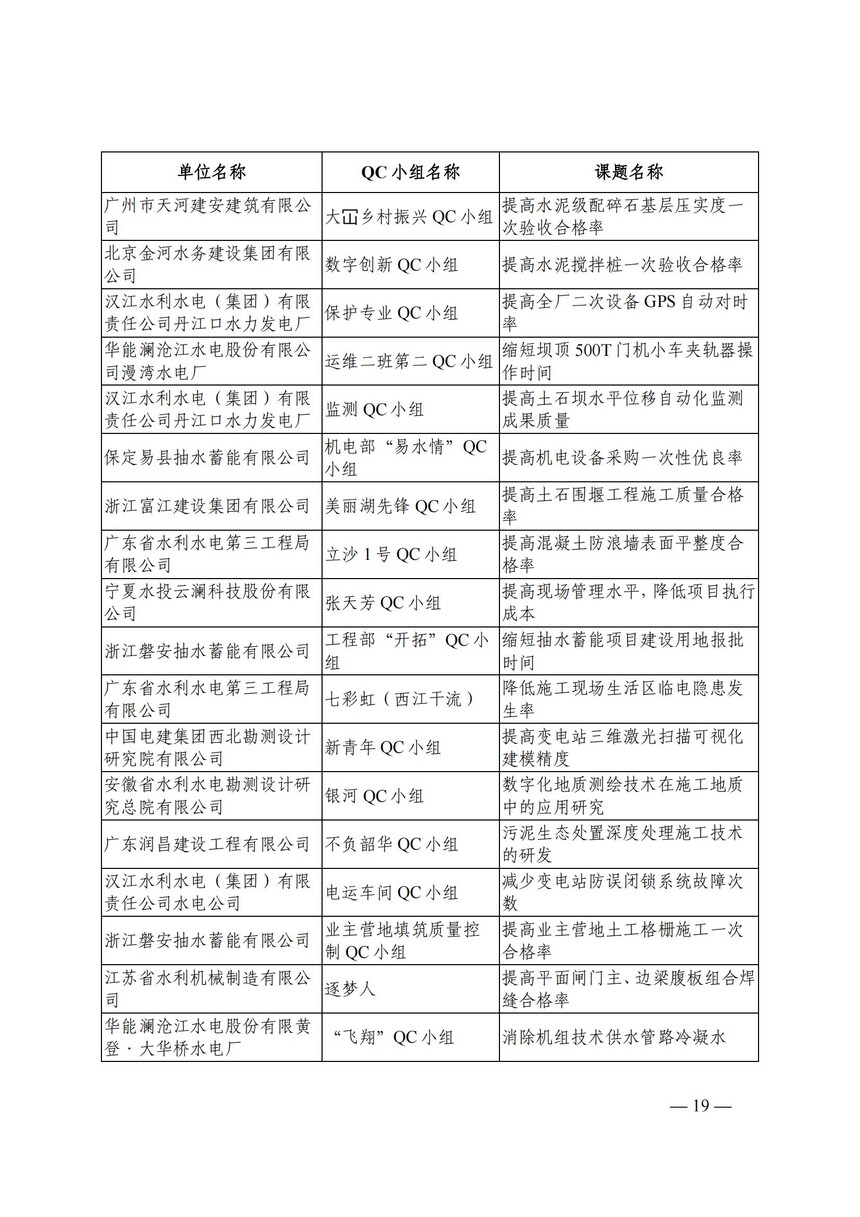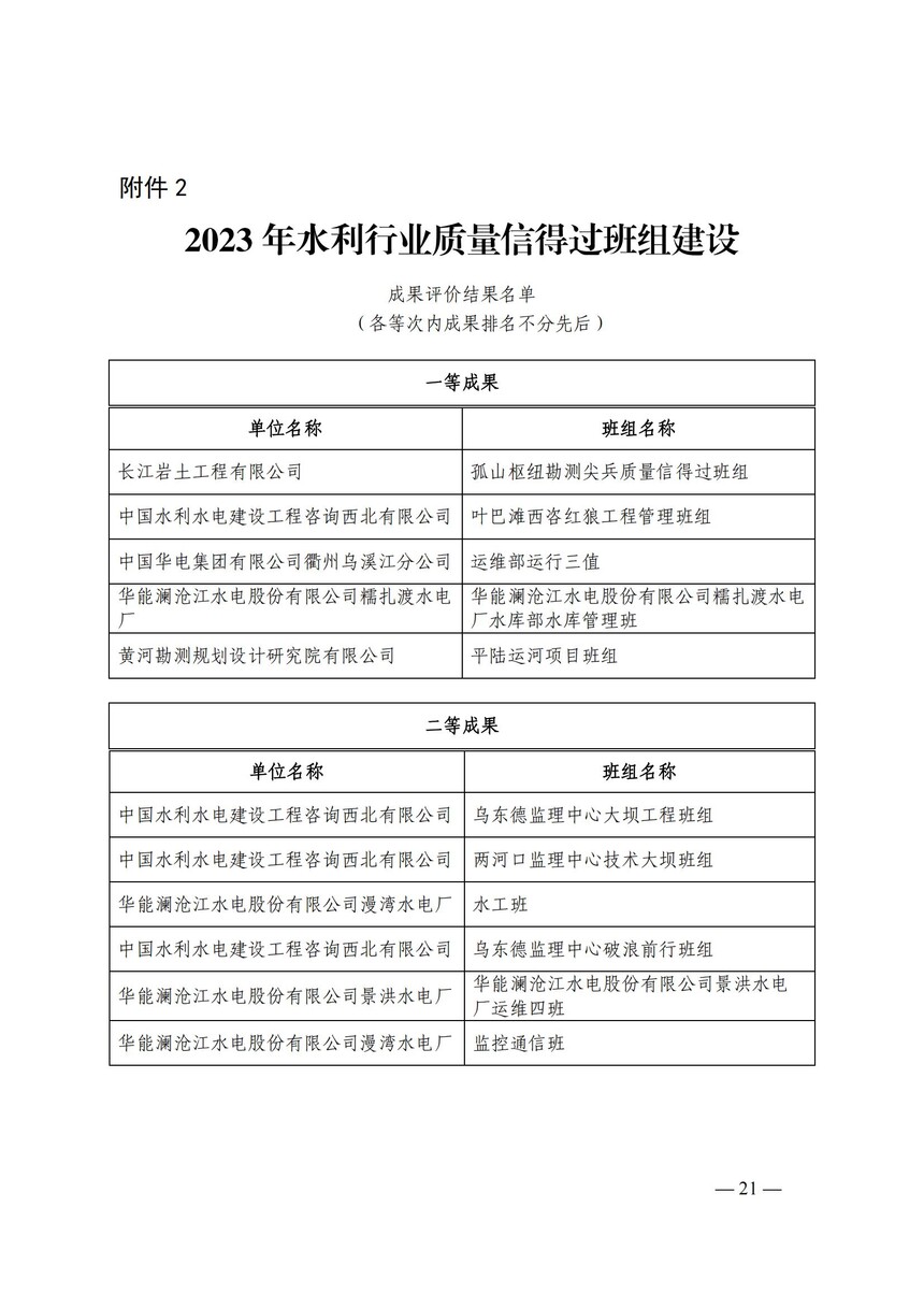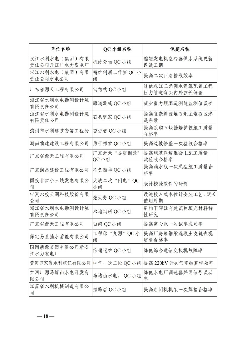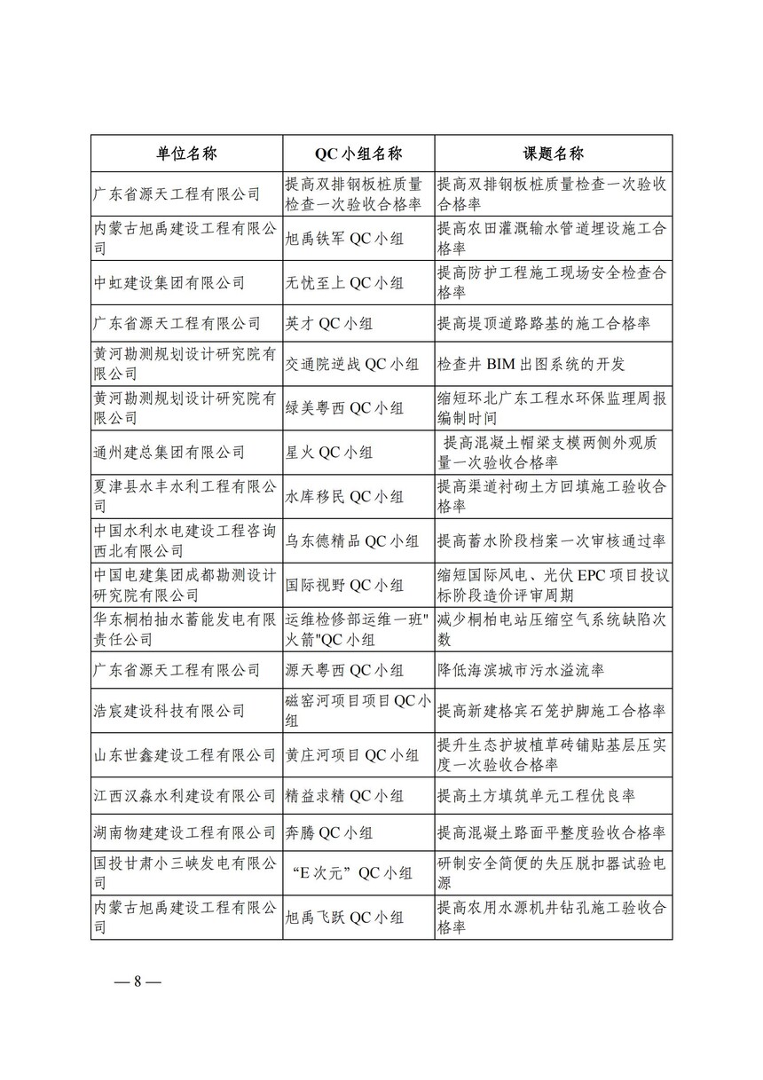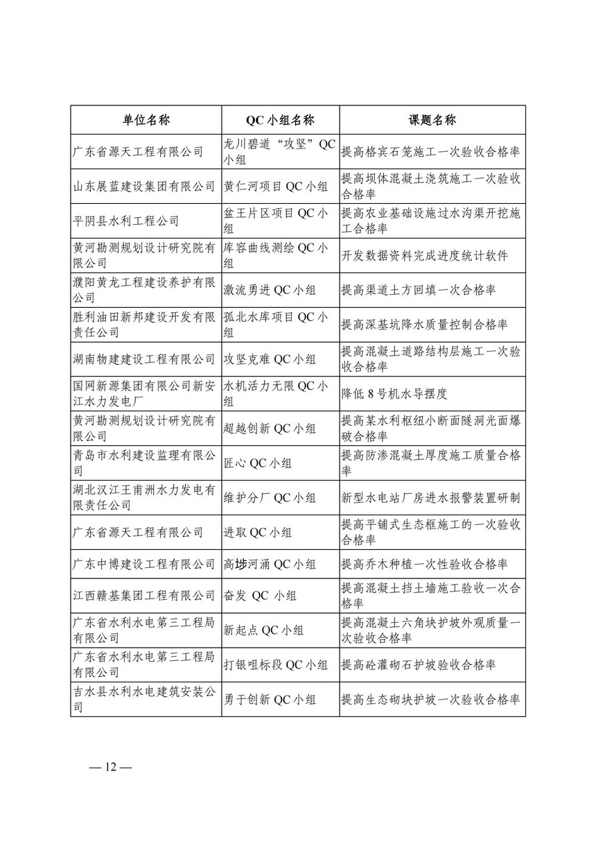 2023 年水利行業質量管理小組活動 成果交流評價結果名單